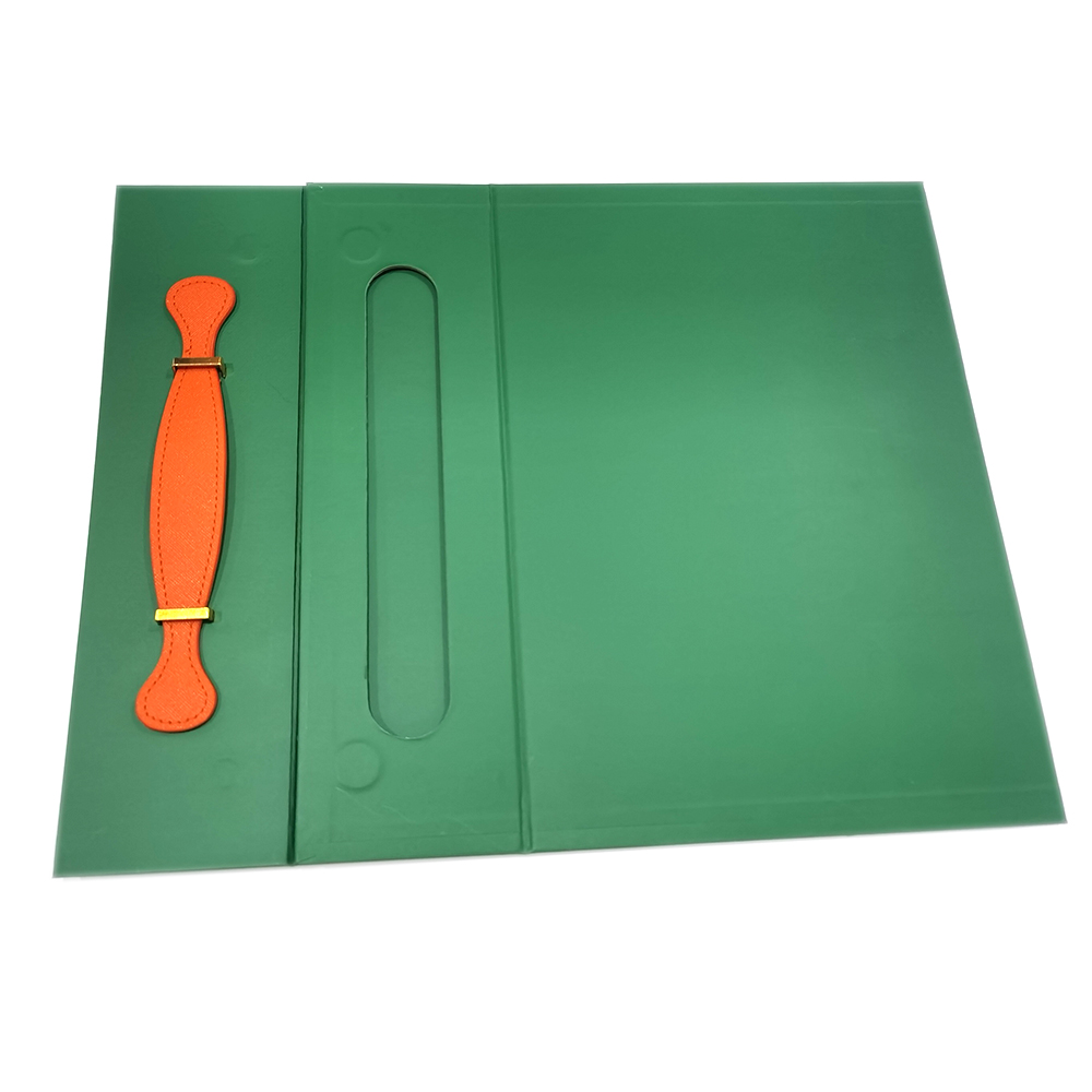 Feature: Genuine faux-leather handle and embossed texture on all sides for a tactile, high-end feel.